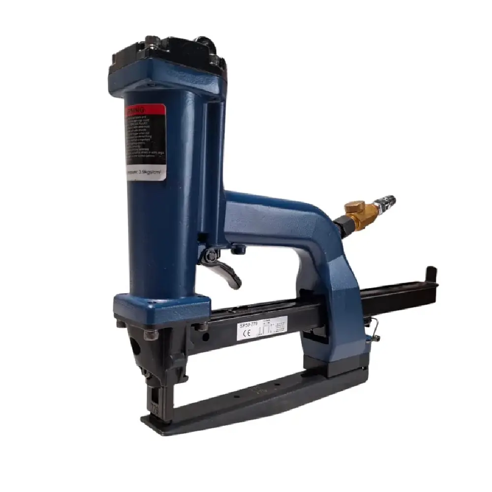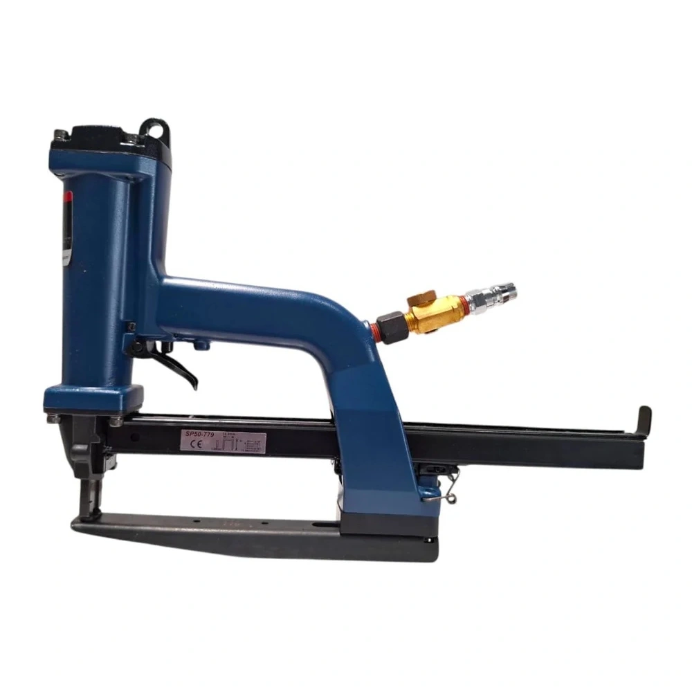The SP50-779 Carton Plier Stapler is a pneumatic tool designed for efficiently closing cartons and packaging materials. This stapler is compatible with 12.3 mm (1/2″) crown staples, specifically the JK779 series, and is commonly used in industrial applications such as sealing corrugated boxes, pallet boxes, and container inserts.